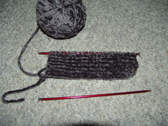 What I've learned so far... If you are going to learn to knit, do NOT pick Chenille yarn as a starting project. As a second project it would have been fine, but it is not good for seeing if you are doing it right.